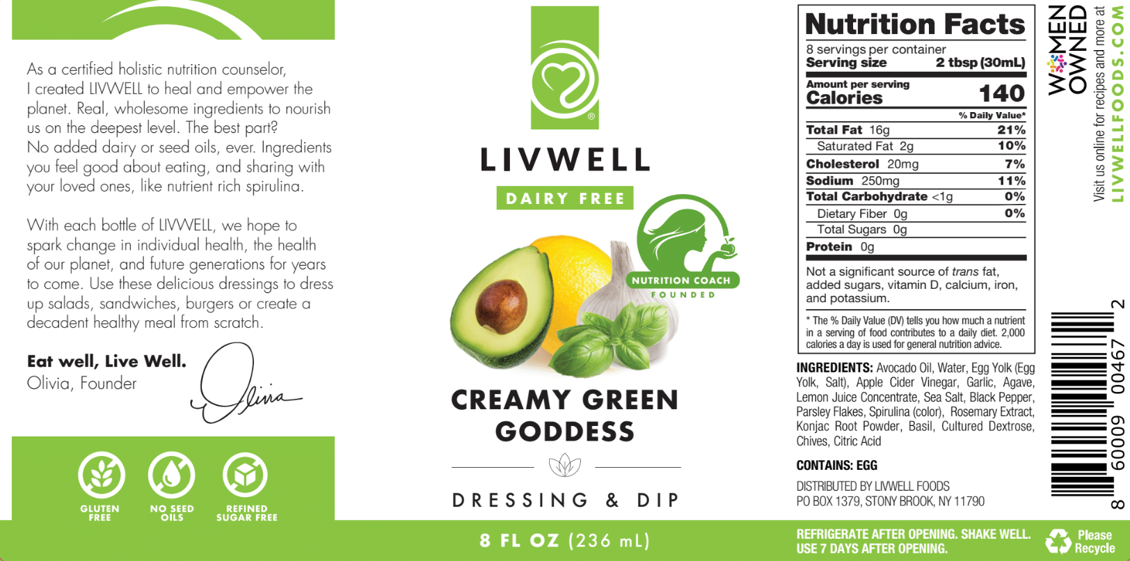 Creamy, herby green goddess dressing, but make it dairy free! Perfect for salads, sandwiches as a dip and more. Plus this dressing is packed with real wholesome ingredients and nutrient rich superfoods like spirulina, avocado oil and cage free eggs.