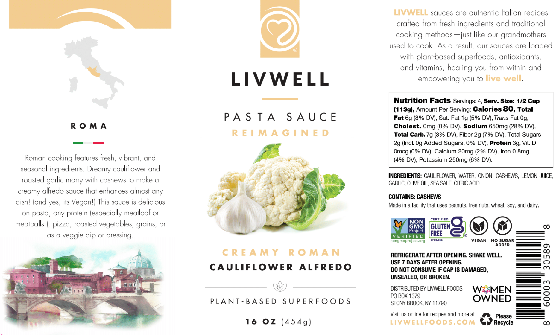 Roman Cauliflower Vegan Alfredo Pasta Sauce (Dairy-Free)- 6 pack