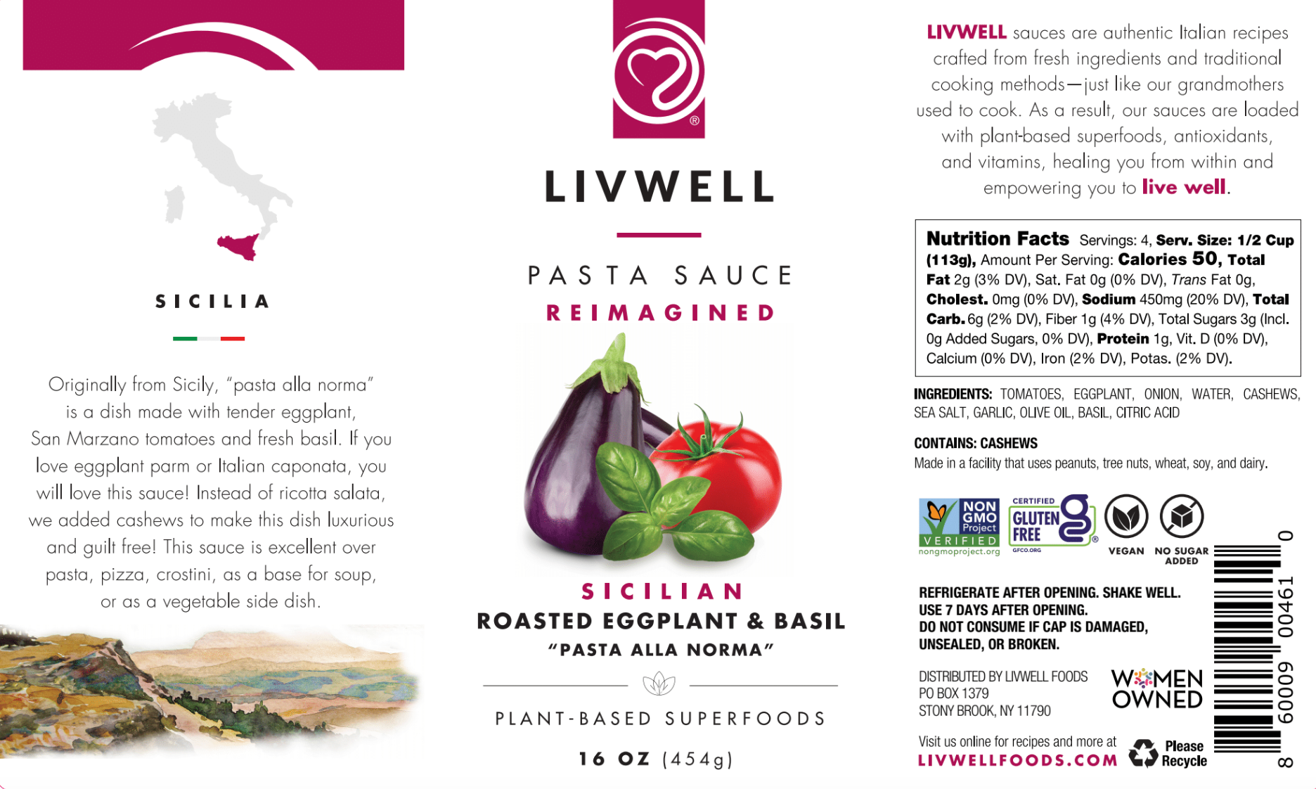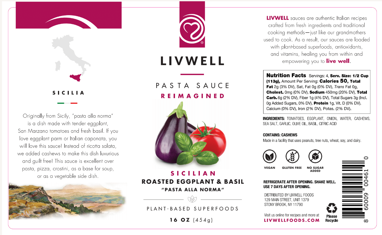 Originally from Sicily, “pasta alla norma” is a dish made with tender eggplant, san marzano tomatoes and fresh basil. If you love eggplant parm or Italian caponata, you will love this sauce! Instead of ricotta salata, we added cashews to make this dish luxurious and guilt free! This sauce is excellent over pasta, pizza, crostini, as a base for soup, or as a vegetable side dish.